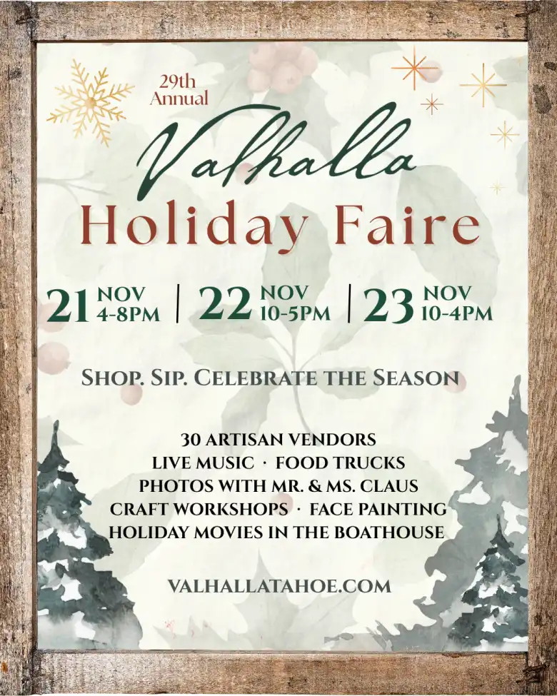 For 29 years, Valhalla Tahoe has hosted an annual Holiday Faire at the Heller Estate for the enjoyment of the community. Valhalla Tahoe and our volunteers celebrate the season by decking the Grand Hall for everyone’s enjoyment. A favorite tradition for many local families, you can get a glimpse of Tahoe’s past while shopping for hand-made crafts, taking free photos with Mr. and Mrs Claus, and enjoying local entertainment and holiday libations. Tahoe’s Children’s Choirs line the balcony to sing holiday songs throughout the day.