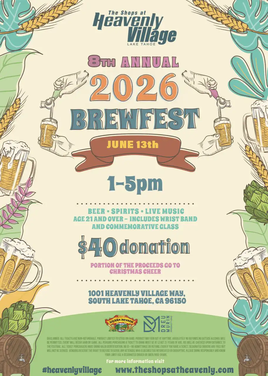 Saturday, June 13, 2026, 12:00 – 4:00 pm, Raise a glass and kick off summer in style at the 8th Annual Heavenly Village Brewfest, returning to South Lake Tahoe’s #1 destination for events, dining, and entertainment.