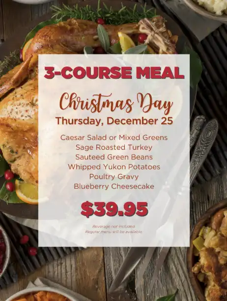 Thursday, December 25, 2025, 12-8 pm, Enjoy a Christmas Day three-course meal at Zephyr Cove Restaurant for $39.95! Regular menu available as well.