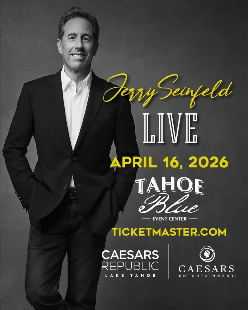 Thursday, April 16, 2026, 8:00 pm, Comedy Legend Jerry Seinfeld is coming to the Tahoe Blue Event Center!