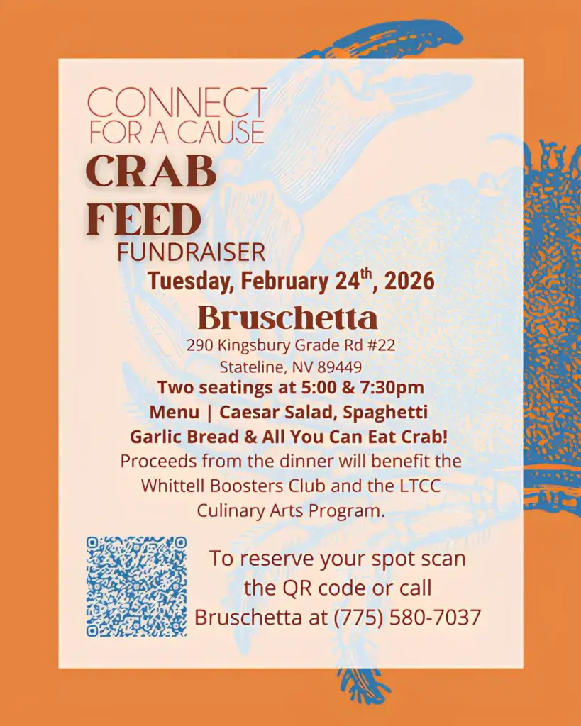 Tuesday, February 24, 2026, Get ready for an evening of indulgence and community spirit as the Tahoe Chamber and Bruschetta proudly present the Connect for a Cause Crab Feed!