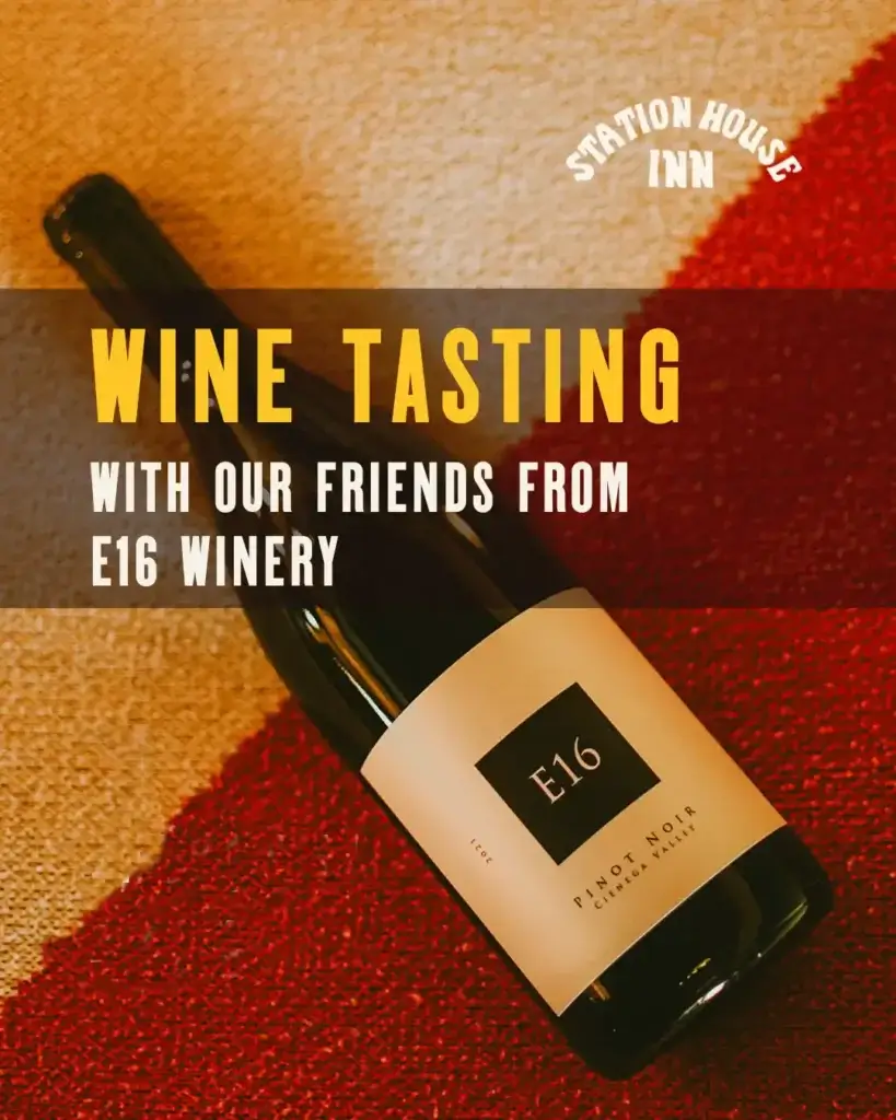 Station House Inn and E16 Winery would like to invite you to our wine tasting in the lobby on Saturday, February 21, 2026, from 4:00 to 6:00 pm. Cozy vibes, great pours, and the perfect après-ski stop—no reservations needed.