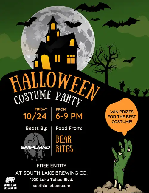 Friday, October 24, 2025, 6:00 – 9:00 pm, Halloween Costume Party at the South Lake Brewing Company.