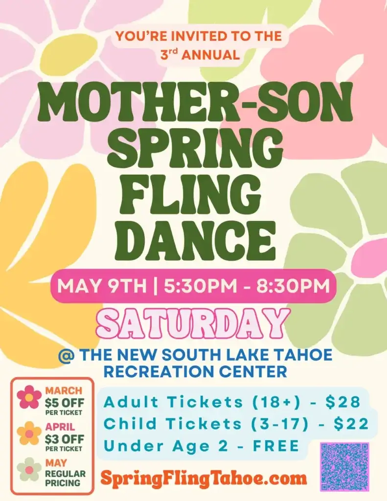 Mark your calendars and make plans to join us for an unforgettable evening at the Mother-Son Spring Fling Dance in South Lake Tahoe. Whether you’re spinning around the dance floor or creating cherished memories with your little man, this event promises to be a highlight of the spring season. We look forward to seeing Mama’s moves and Son’s grooves and celebrating Mother’s Day Eve with you!