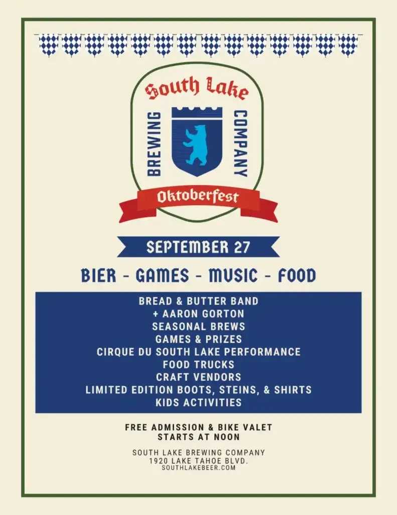 Admission is free, and the event will be held at 1920 Lake Tahoe Blvd. Carpooling and biking are encouraged due to limited parking. Prost!