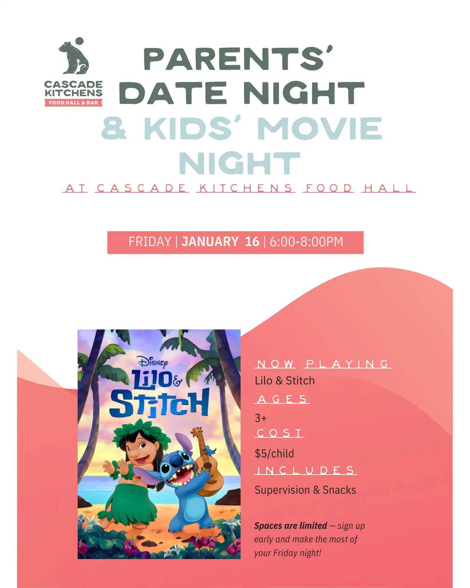 Parents' Date Night & Kids Movie Night at Cascade Kitchens