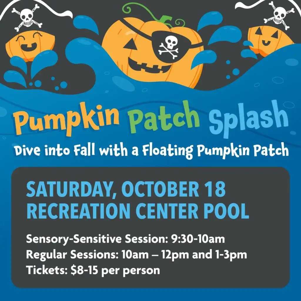 Event Location: South Lake Tahoe Recreation & Swim Complex, 1180 Rufus Allen Blvd. If you have any questions, call 530.542.6056, and for details, visit https://www.cityofslt.us/2434/Pumpkin-Patch-Splash.