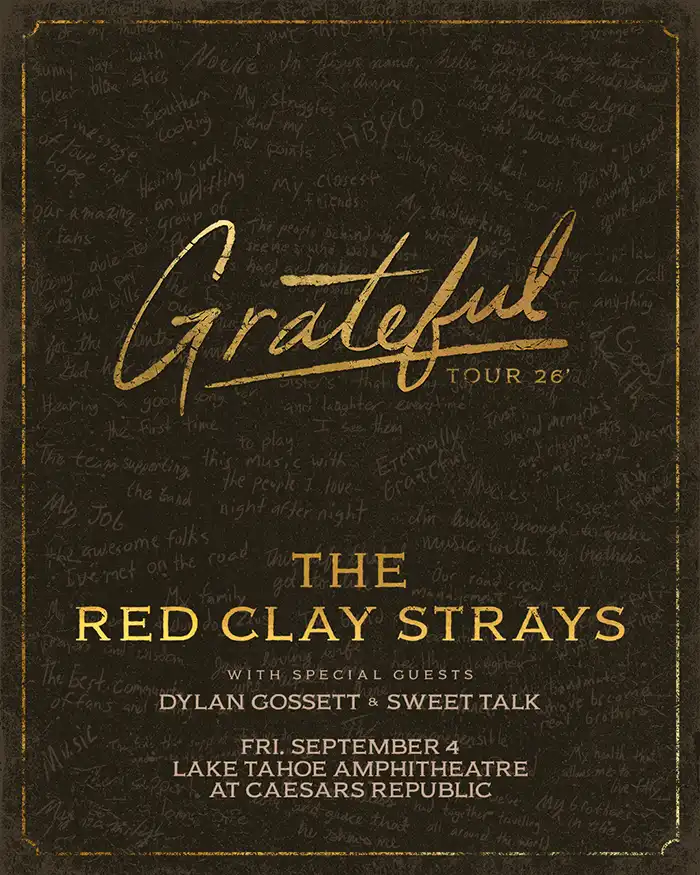 The Red Clay Strays are a rising American band blending country, rock, and soul into a raw, emotionally charged sound. Formed in Alabama, the group has built a devoted following through relentless touring and electrifying live performances. Their music pairs gritty Southern storytelling with powerful vocals and classic rock influences, earning comparisons to both outlaw country legends and modern Americana acts. With breakout songs and a reputation for authenticity, the Red Clay Strays continue to carve out a distinctive place in today’s roots music scene.