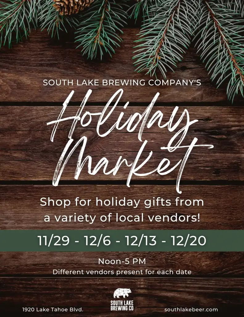 Enjoy your holiday shopping this season at the South Lake Brewing Company’s indoor Holiday Market on four Saturdays – 11/29, 12/6, 12/13, and 12/20. The market will be open from 12:00 to 5:00 pm. on each of those dates.