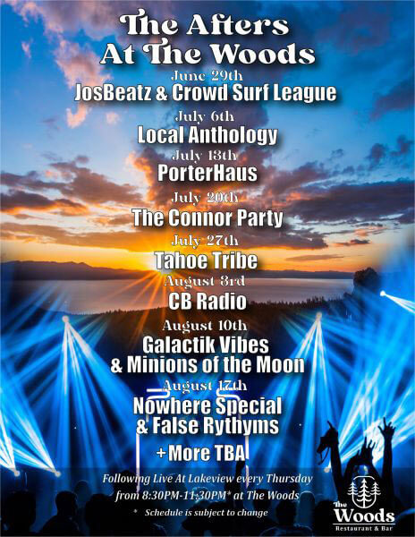 The Afters at The Woods Restaurant & Bar. Artists performing following Live at Lakeview every Thursday from 8:30 pm to 11:30 pm.