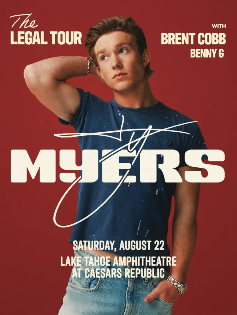 Caesars Republic Lake Tahoe announces Ty Myers to its 2026 Summer Concert Series. Ty Myers will take the stage at The Lake Tahoe Amphitheatre at Caesars Republic on Saturday, August 22, 2026, at 7:00 pm, with special guests Brent Cobb and Benny G.