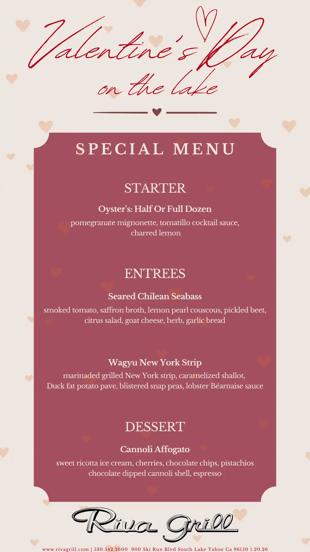 In addition to the regular menu, Chef has prepared this Valentine’s Day special.