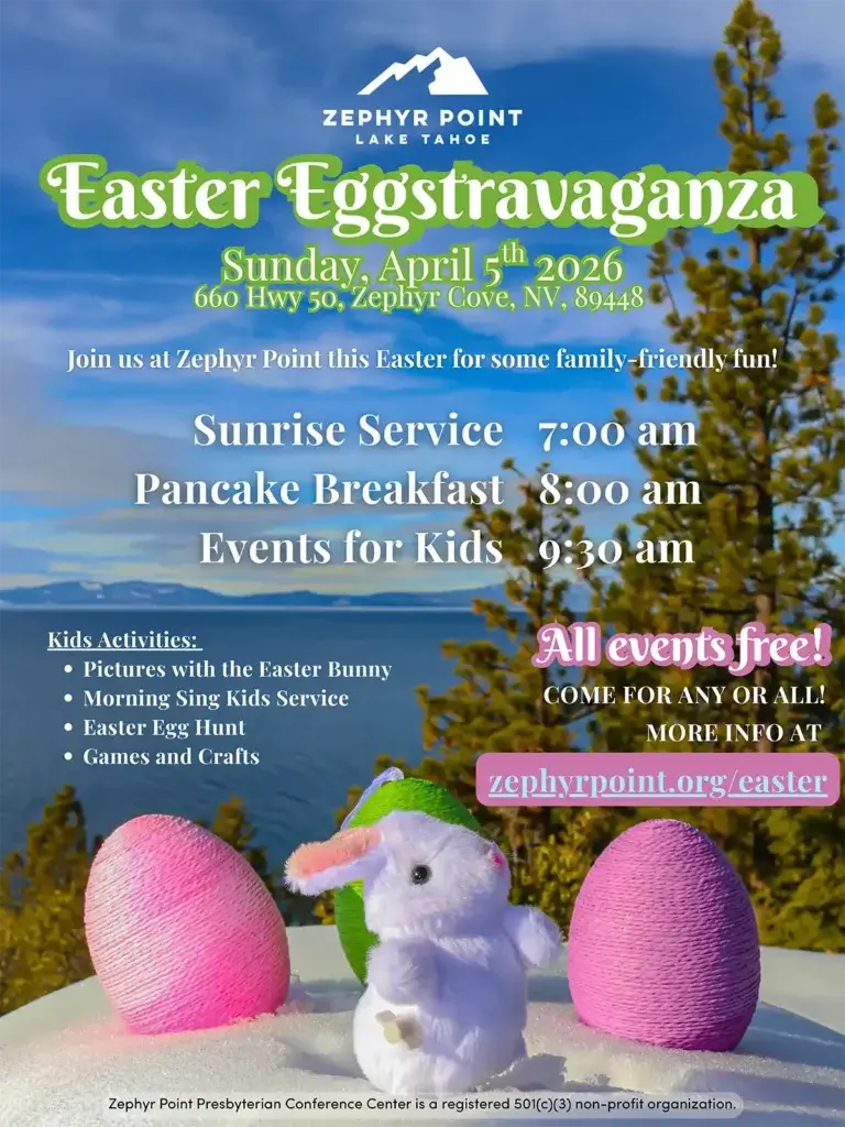 Sunday, April 5, 2026. Celebrate Easter at Zephyr Point with a morning full of joy, community, and fun!