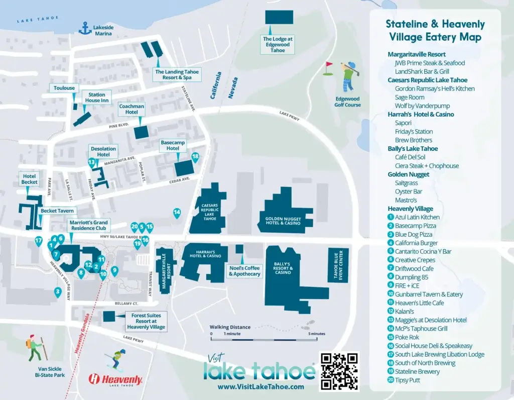 Stateline and Heavenly Village Lake Tahoe Map within walking distance of Tahoe Blue Event Center