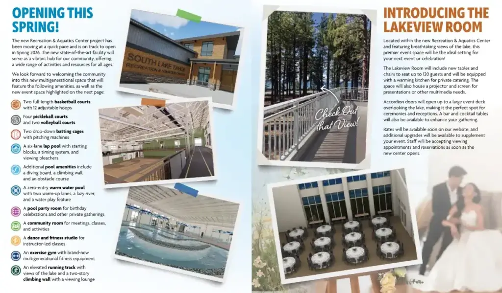 Built in 1975, the existing Recreation Center has seen only limited upgrades and routine maintenance over the years. Without a major renovation, many of the original construction systems and materials remain in use, leading to challenges such as wear and tear, code compliance issues, the presence of hazardous materials, and systems nearing the end of their functional lifespan. As we prepare to open the new Recreation & Aquatics Center, we are excited to share a glimpse of what’s to come. This state-of-the-art facility will serve as a vibrant hub for our community, offering a wide range of activities and resources for all ages. Below, you can view a video rendering that highlights the innovative design and features of the new center, which will soon become a cornerstone of recreation and wellness in South Lake Tahoe.